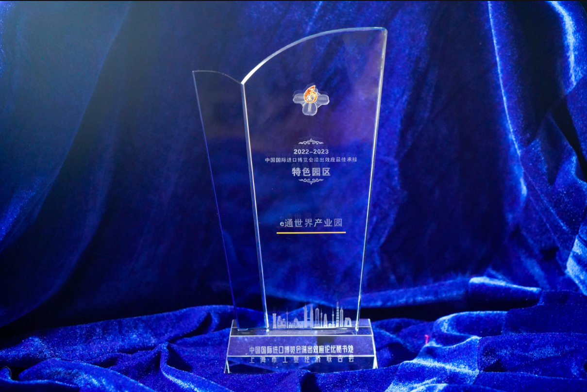 在论坛上,来自进博会永久举办地上海青浦的e通世界产业园荣获“进博会溢出效应最佳承接特色园区”。该奖杯由中国国际进口博览会溢出效应论坛秘书处和上海市工业经济联合会联合颁发。